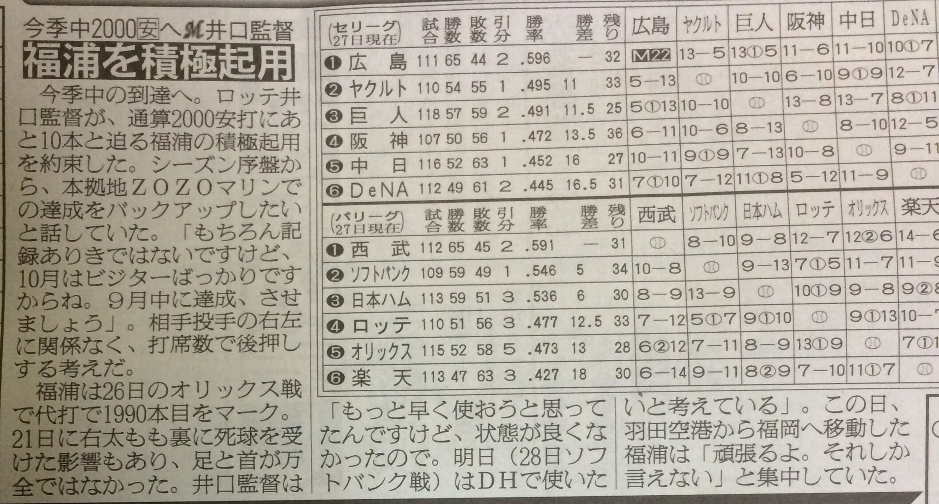 来年のこと考えたら今年はもう捨てて福浦の2000本達成させたほうがチームの利益になる