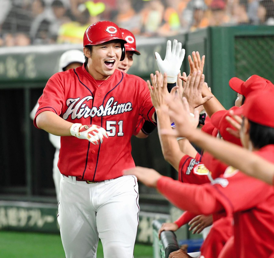 広島・鈴木が初回に26号2ラン 丸もタイムリー 巨人内海から3点を先取