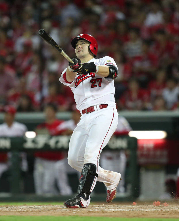 広島の会沢翼捕手(30)が24日の中日戦(マツダ)で今季12号となるソロ本塁打を放ち、