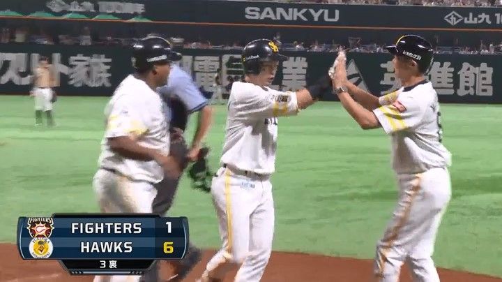 ソフトバンク・中村晃 第10号3ランホームラン!日本ハム高梨、3回で3飛翔6失点の炎上・・・