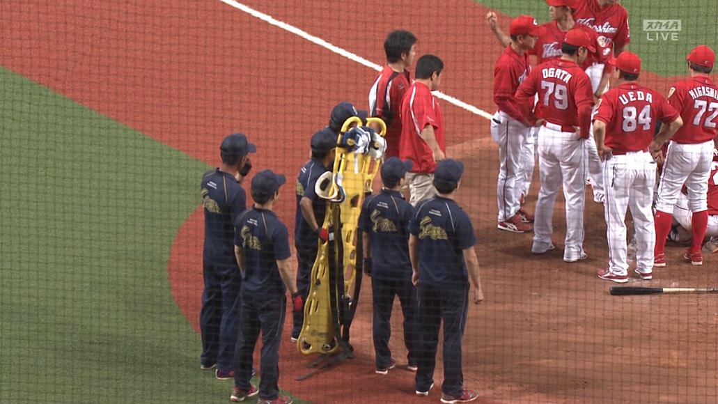広島・會澤が頭部死球で交代・・・阪神ドリス1球で退場