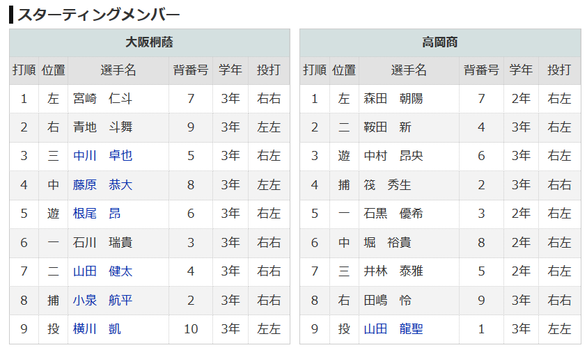 本日第4試合の先発メンバーが発表されました。 #大阪桐蔭 の先発投手は左腕の横川くんです!
