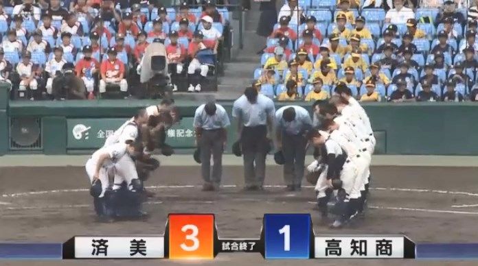 第100回全国高校野球選手権大会第12日は16日、甲子園球場で3回戦の4試合が行われ、第3試合の済美(愛媛)と高知商(高知)が対戦。済美が3―1で四国対決を制し、準優勝した2004年以来14年ぶりのベスト8入りを果たした。