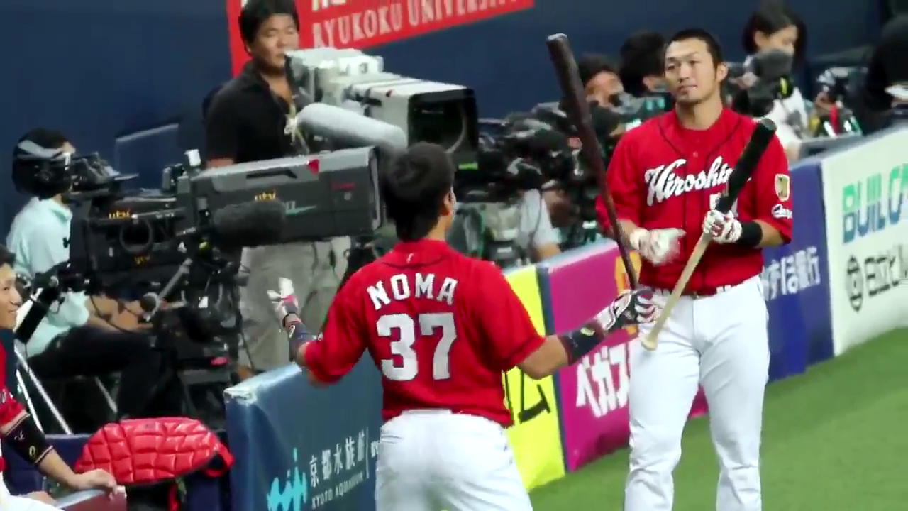 カープ野間峻祥も西川龍馬のモノマネ!小笠原道大も得意wwww