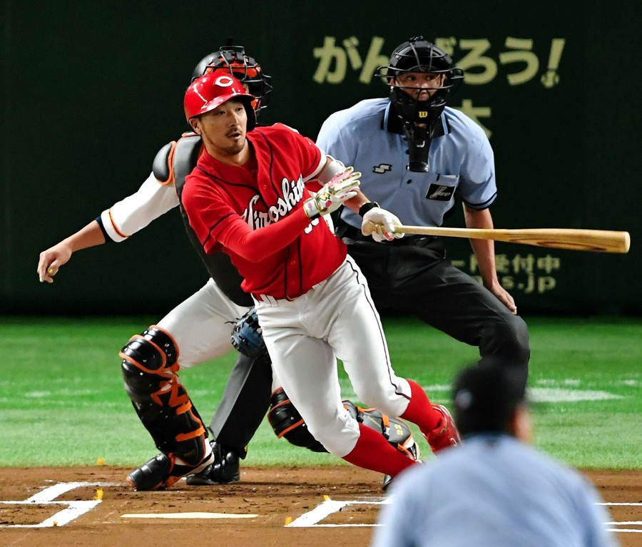 広島・菊池、初回攻守で魅せる 先制の適時二塁打&スーパー美技で失点防ぐ広島の菊池涼介内野手が初回、攻守で球場を沸かせるプレーをみせた。まずはバットだ。無死一塁で左翼線を破る適時二塁打を放ち先制点を奪った。「打ったのはストレート。野間がよく走ってくれました」その裏の守備では岡田を助ける美技を披露。1死二塁でマギーが放った二遊間への打球に飛びつき捕球。一塁へ送球し二ゴロに打ち取った。中前へ抜けていれば1-1の同点になっていた場面。初回のピンチをしのいだ。