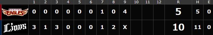 西武:山川38号2ラン(1回)、森15号ソロ(2回)、