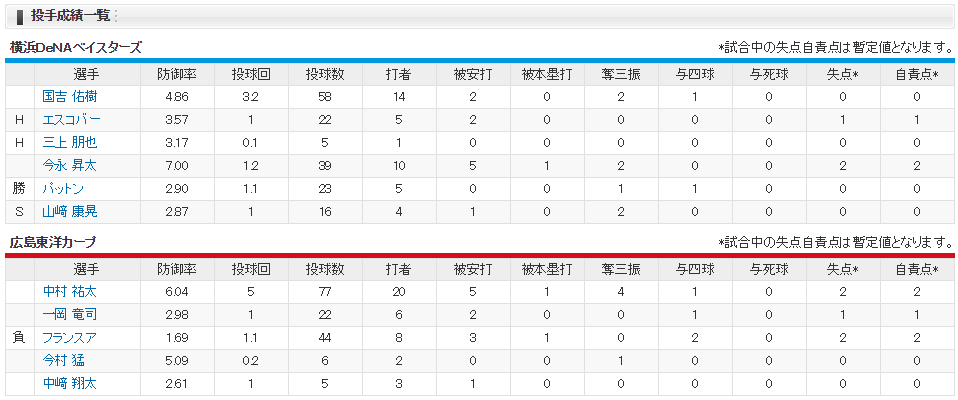 ~広島横浜戦終了~
