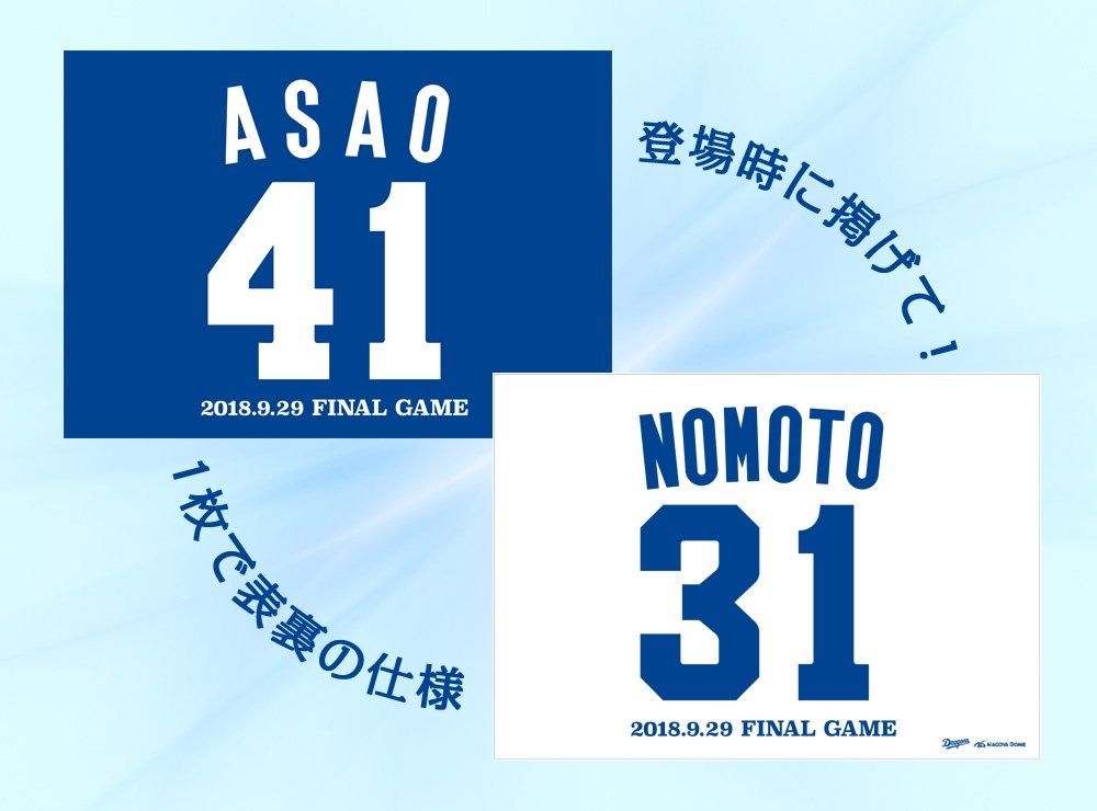 9月29日(土)にナゴヤドームで行われる対阪神戦の試合後、昨日今シーズン限りでの引退を表明した浅尾拓也投手、野本圭選手の引退セレモニーを行う予定です。
