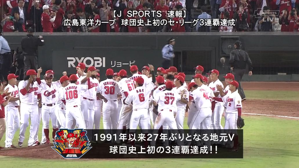 【速報】広島東洋カープ、球団史上初のセリーグ3連覇達成!!!!