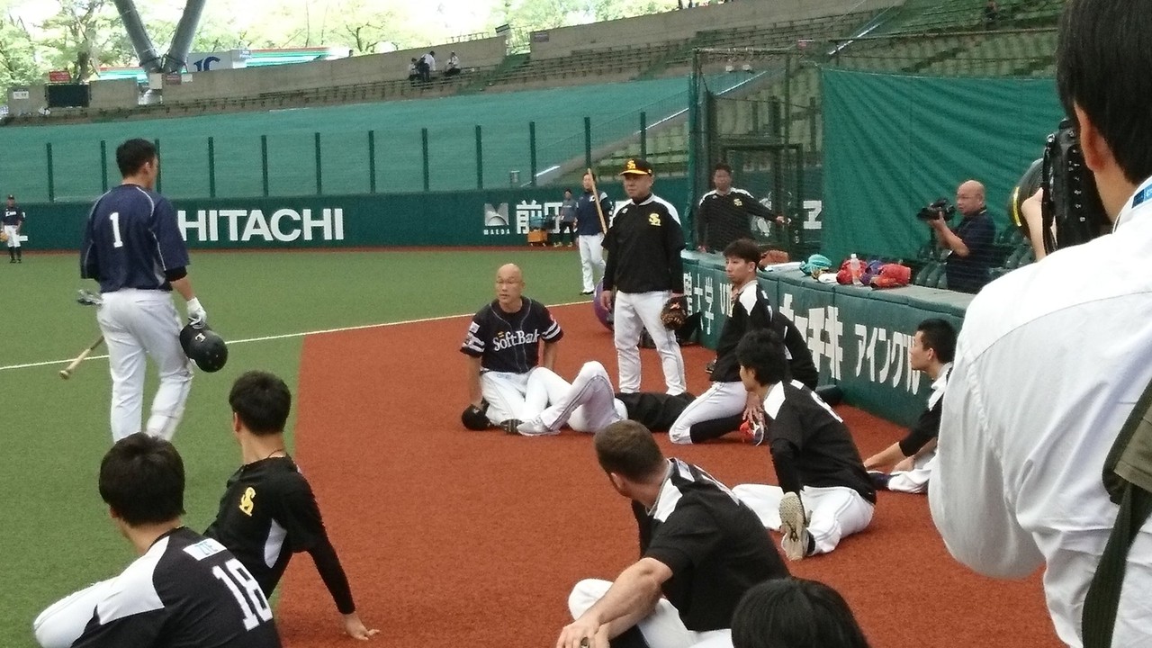 練習前にアクシデントが発生。打撃練習をしていた西武・栗山巧選手の打球がソフトバンク・柳田悠岐選手の左側頭部に直撃。
