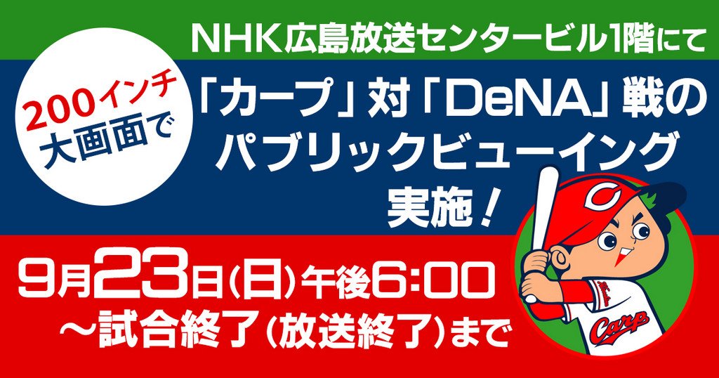 【悲報】広島ローカル、本日中継無し!NHK広島ではパブリックビューイング開催
