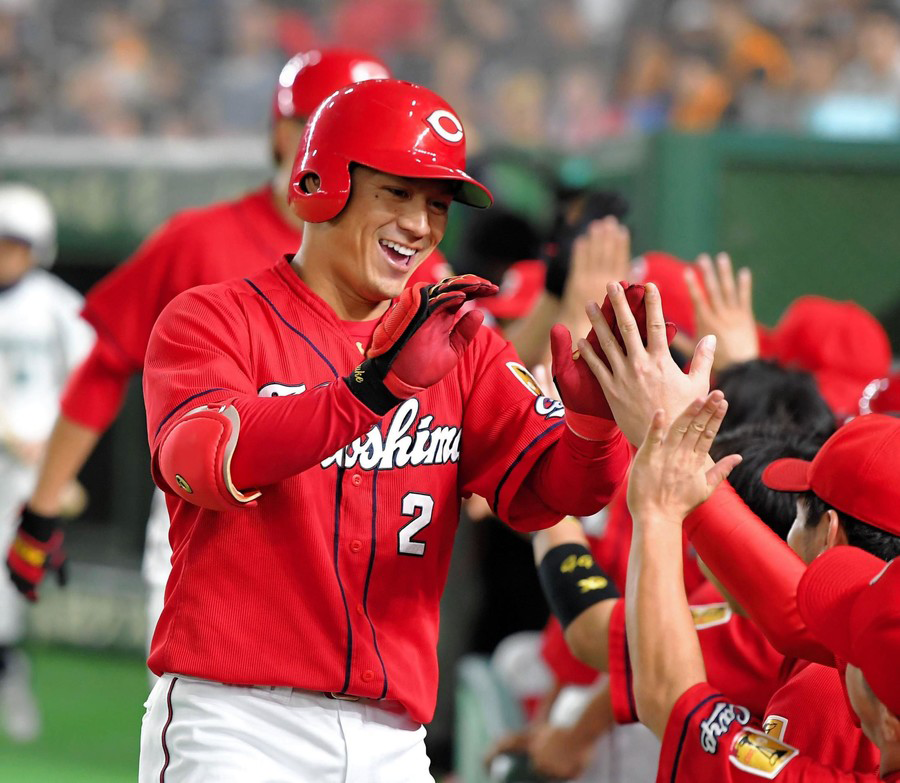 最多勝を狙う大瀬良を援護する10号2ラン。二塁手俊太と視線を合わせることなくダイヤモンドを一周すると、笑顔で仲間とハイタッチをかわした。(全文はリンク先)