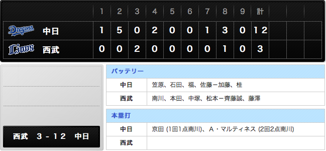 【フェニックスリーグ試合結果】中日 12-3 西武 京田・マルティネスがHR 高橋5安打&石垣猛打賞
