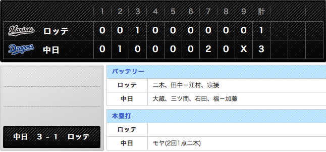 【フェニックスリーグ試合結果】中日 3-1 ロッテ モヤがホームラン 育成・大蔵が5回1失点