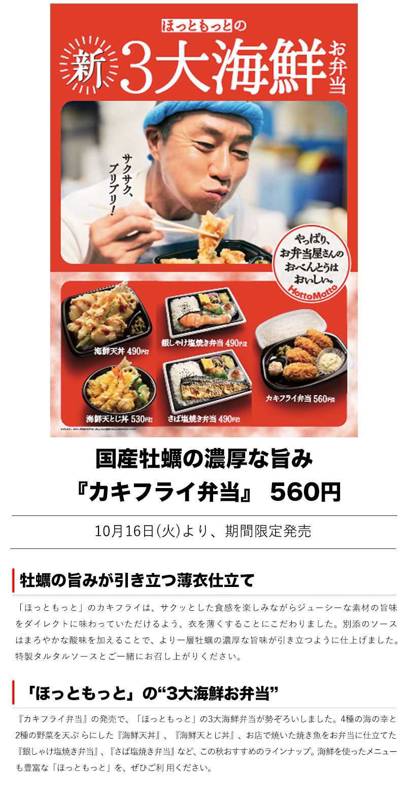 ・【朗報】ほっともっとさん、国産カキフライ弁当を560円で提供してしまう