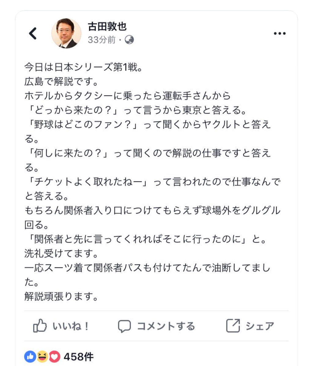 東京から来たヤクルトファン、広島の洗礼を受ける