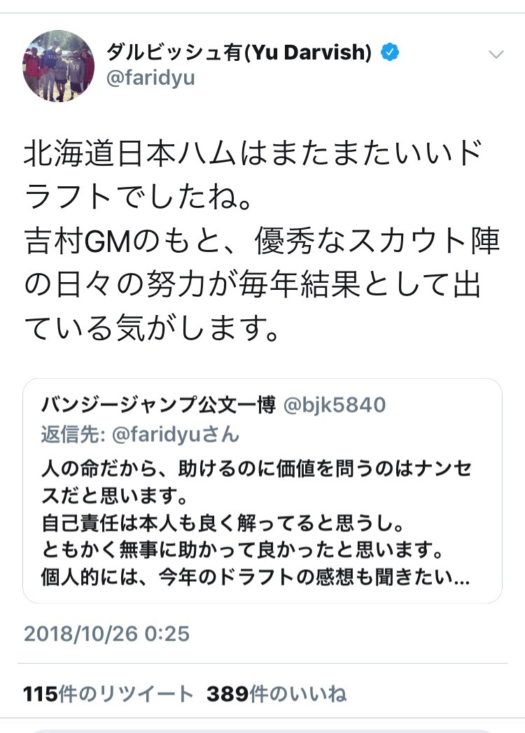 ダルビッシュ有さん「またまた日ハムは良いドラフトでしたね」