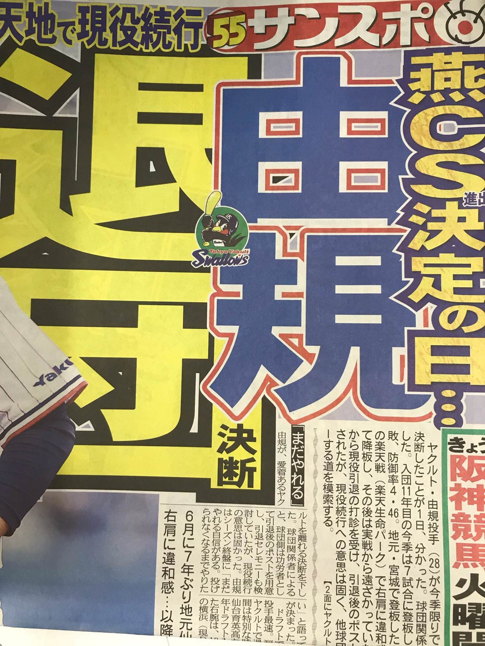 【速報】ヤクルト由規、引退勧告 →退団を決意 「まだやれる」