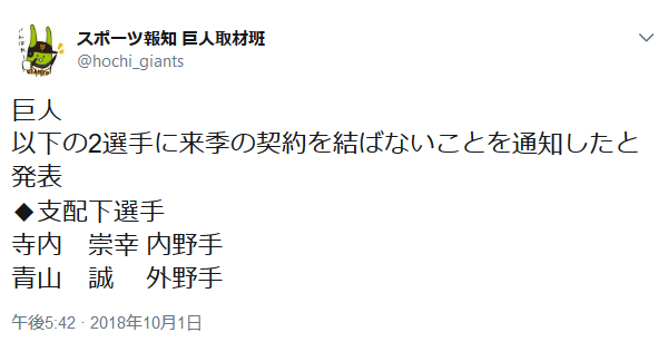 https://mobile.twitter.com/hochi_giants/status/1046681858556145664