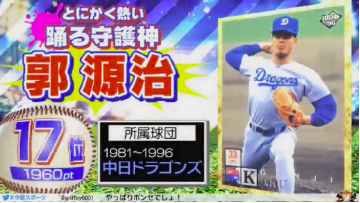 最強助っ人ランキングに中日・郭源治がランクイン!