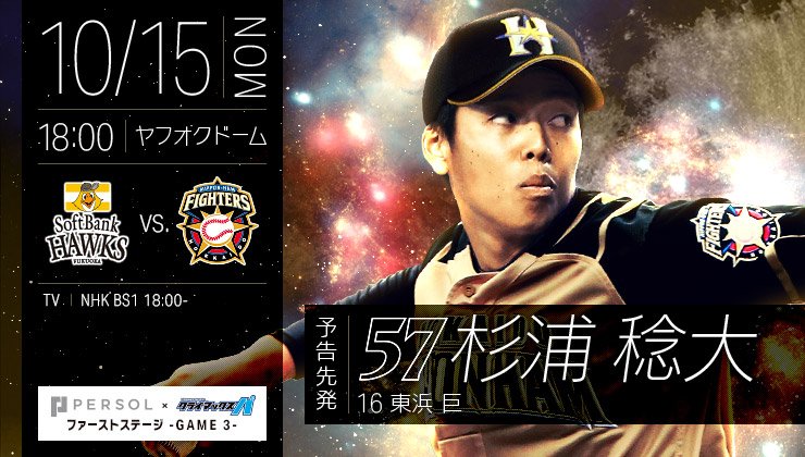 【予告先発】CS第3戦 東浜(ソ)-杉浦(日)www