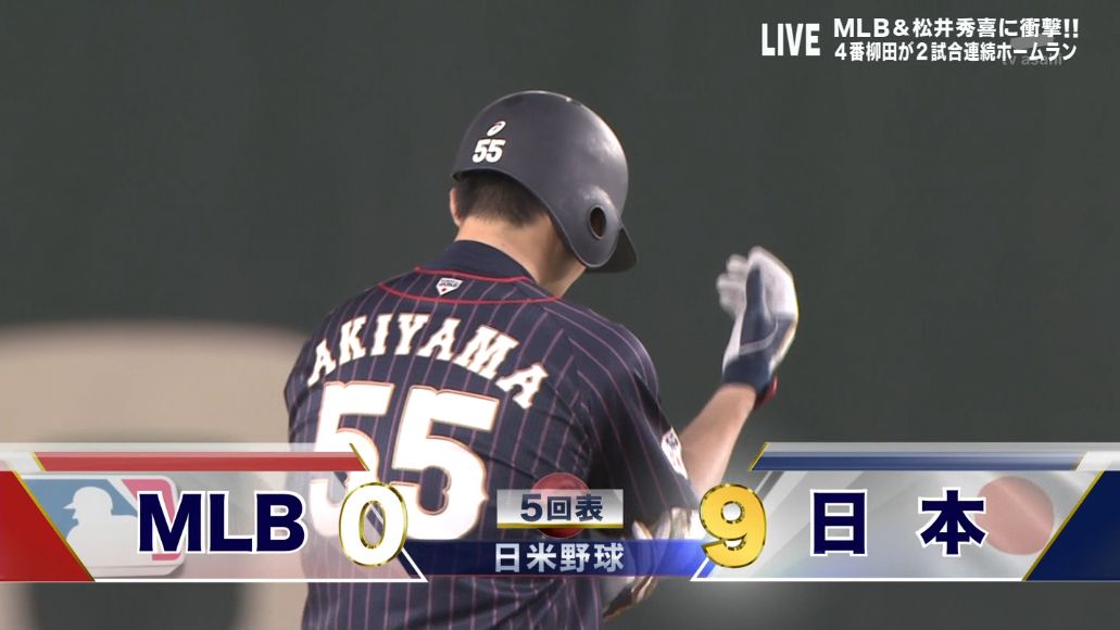【日米野球】侍ジャパン、打線大爆発!秋山のタイムリーで9点目