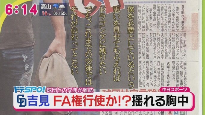 吉見は「今日はしゃべれない。すみません、失礼します」と多くを語らなかった。