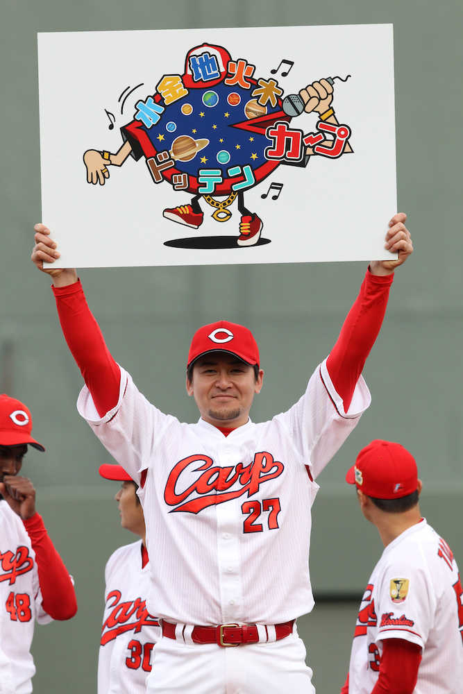 広島は23日、マツダスタジアムでファン感謝デーを開催し、来季のキャッチフレーズ「水金地火木ドッテンカープ」を発表した。