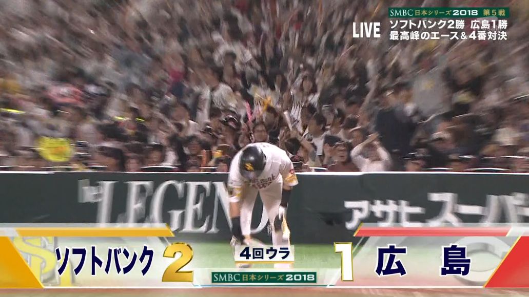 【日本シリーズ】ソフトバンク、中村晃の2点タイムリーで逆転!!