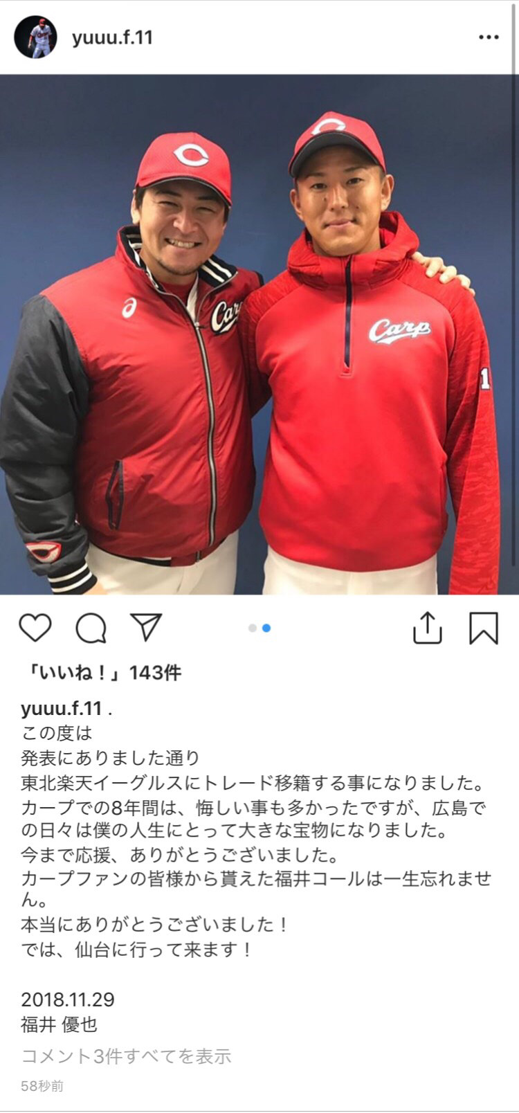 カープファンの皆様から貰えた福井コールは一生忘れません。