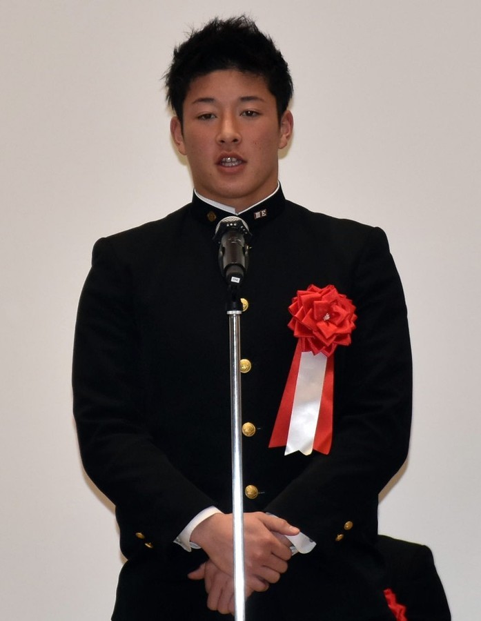 登壇した日本ハムのドラフト1位・吉田輝星投手(17)は、「賞をもらえて素直に嬉しい。
