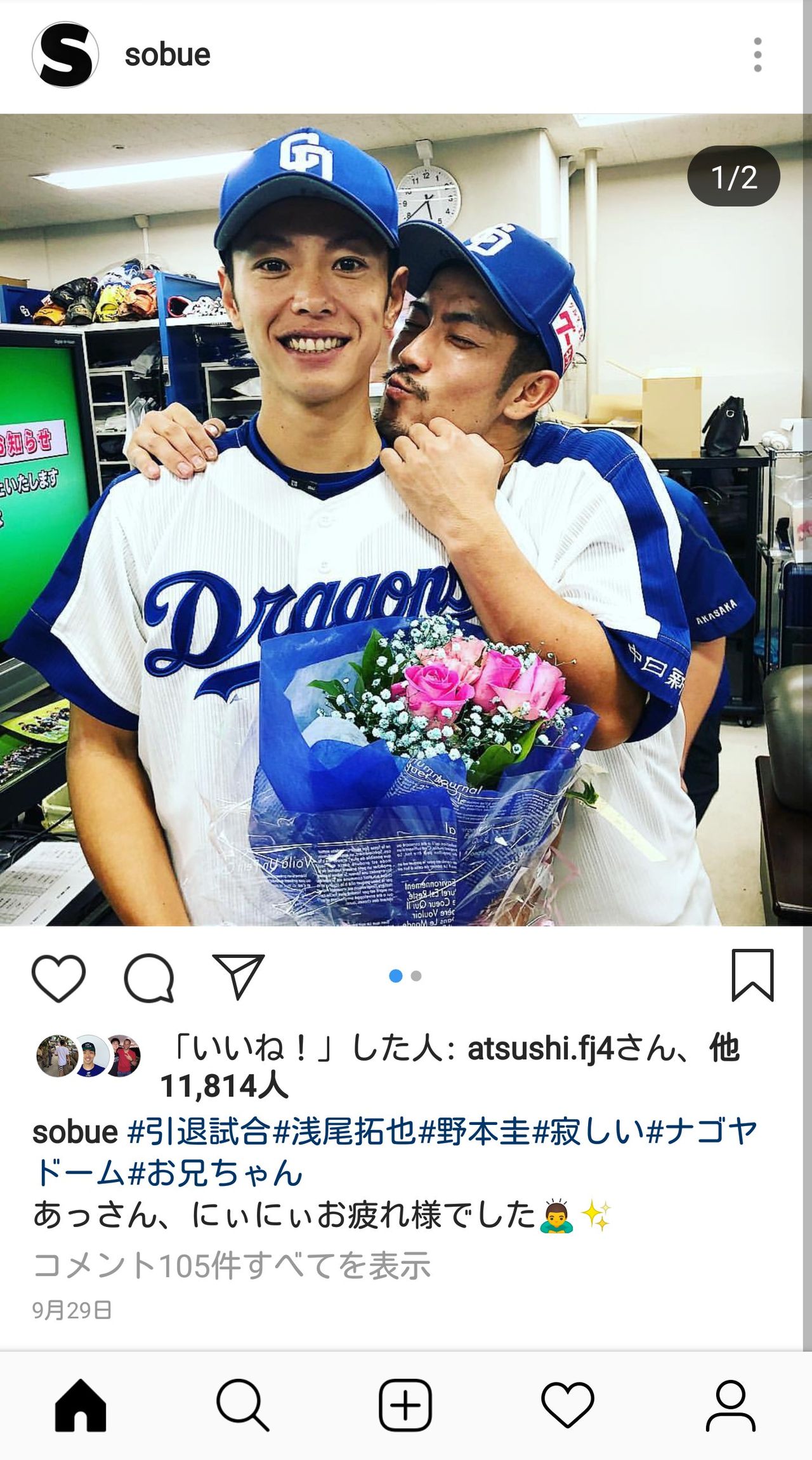 中日・祖父江「にぃにぃお疲れ様でした!」