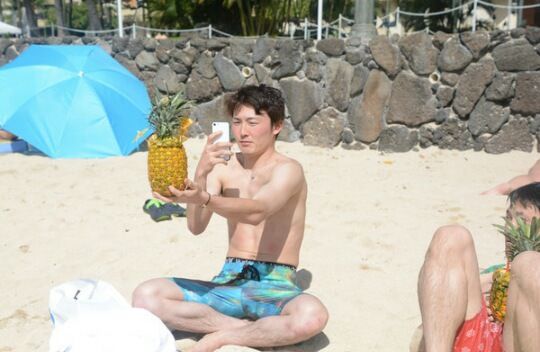 海に入ったり、インスタ映えを意識して?パイナップルをくりぬいたジュースを味わったりするなど、史上初めて新人から2年連続でフルイニング出場を達成したシーズンの疲れを癒やしながら、常夏の島を満喫している。