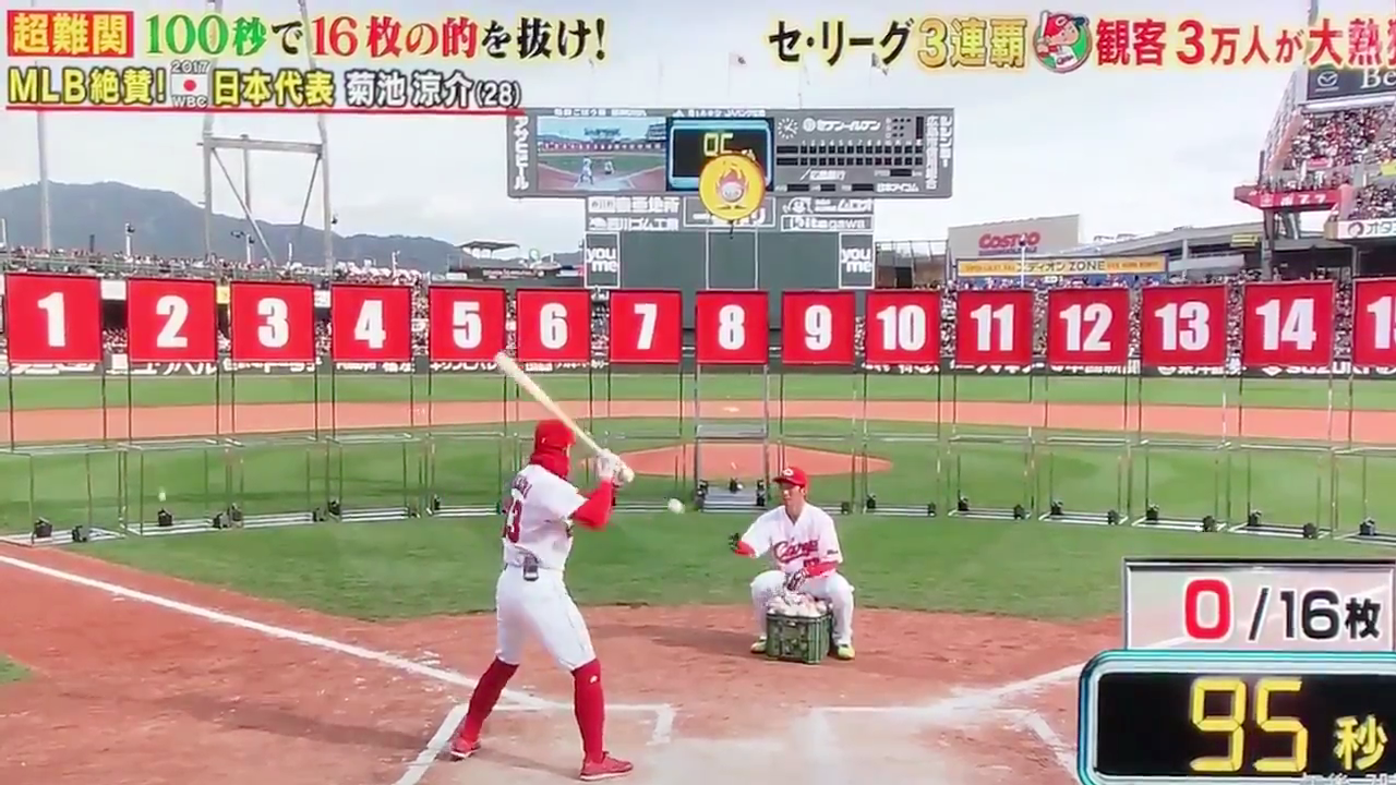 カープ菊池涼介『炎の体育会TV』100秒チャレンジ『ヒットTHEターゲット』で2度目のパーフェクト未遂!!