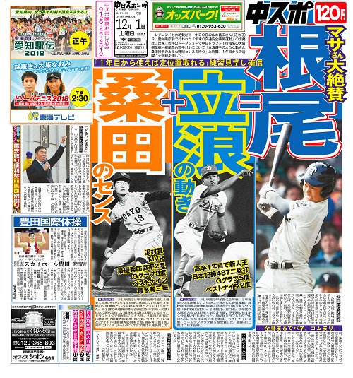 12/01中スポ「根尾=立浪+桑田!!!」キャッキャキャッキャ