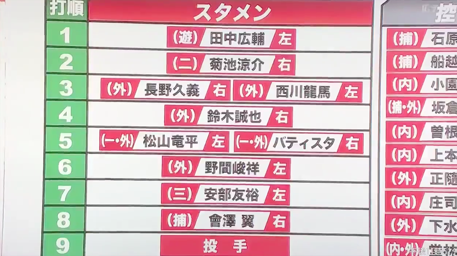 ※緒方監督が現時点で考えている打順。「固定概念はない(打順の変動はある)」と、去年とは大きく打順が入れ替わることを示唆。