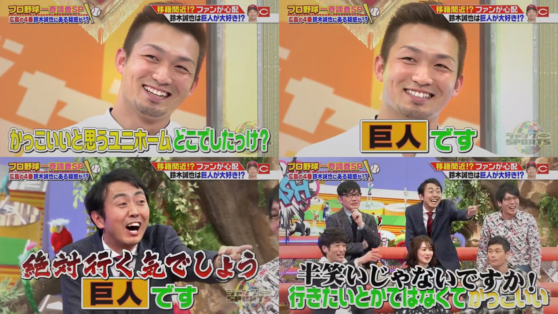 カープ鈴木誠也「巨人のユニかっこいい」ジャンクスポーツで巨人愛語りアンガ田中「勘弁して!」