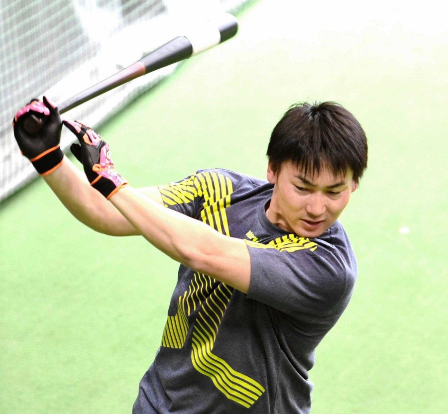 ティー打撃では左手、右手、逆手打ちと3種類を織り交ぜ、マシン打撃でも強打、軽打、流し打ち、引っ張りとテーマを設定しながら、計296スイングした。