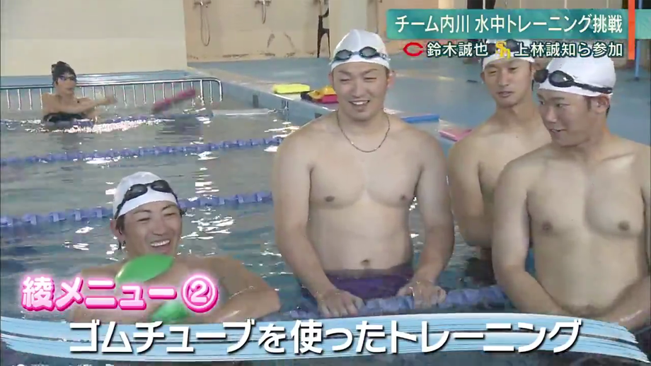 【報ステ】鈴木誠也&上林がプールトレ→チューブを筋力で切る!チーム内川も驚愕「お前ら凄いな」