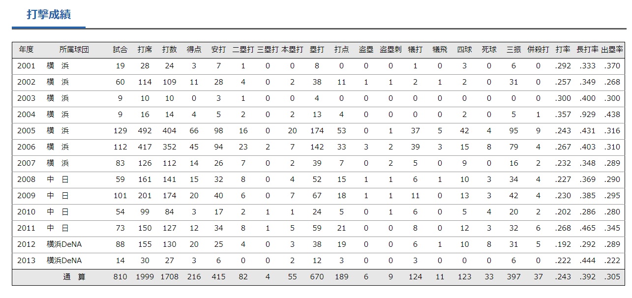 129試合 53打点 20本塁打 0盗塁 打率.243 出塁率.316 OPS.747 犠打数 37