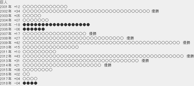 21世紀のセリーグ球団の年度別貯金借金一覧
