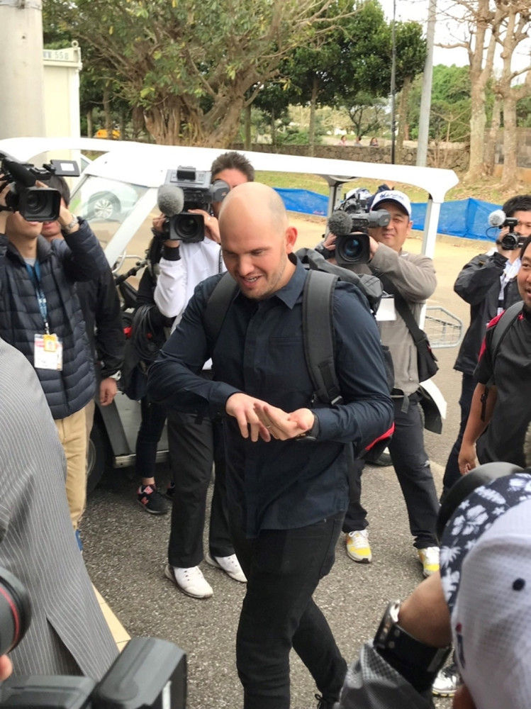 日本ハムを退団してロッテに入団したブランドン・レアード内野手(31)が沖縄・石垣島キャンプ初日の1日、いきなり「寿司ポーズ」を報道陣に披露した。