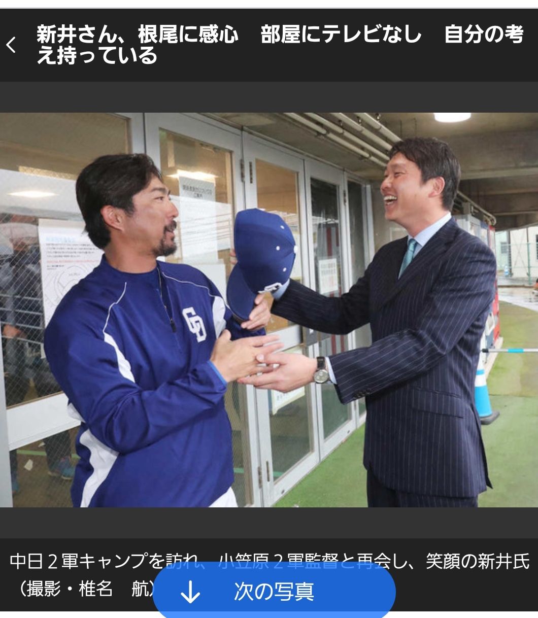 新井貴浩さん、小笠原道大中日二軍監督と再会しニッコリ