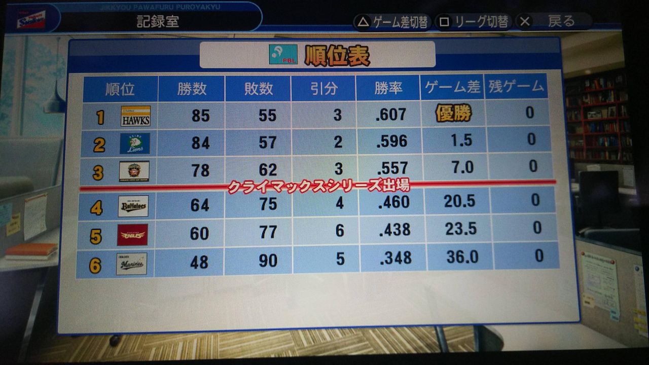 首位ソフトバンクと1.5ゲーム差で2位になった模様