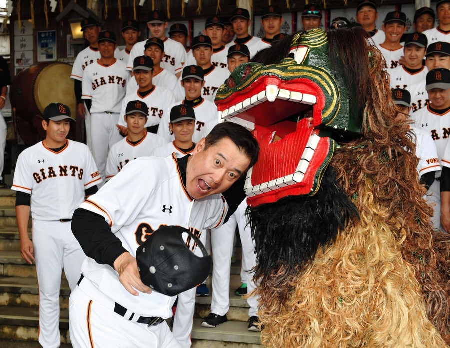【悲報】原監督、獅子舞に噛まれる