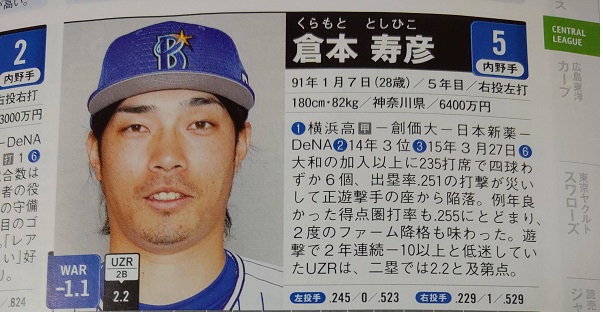 DeNA倉本 セカンドUZRがプラスで及第点