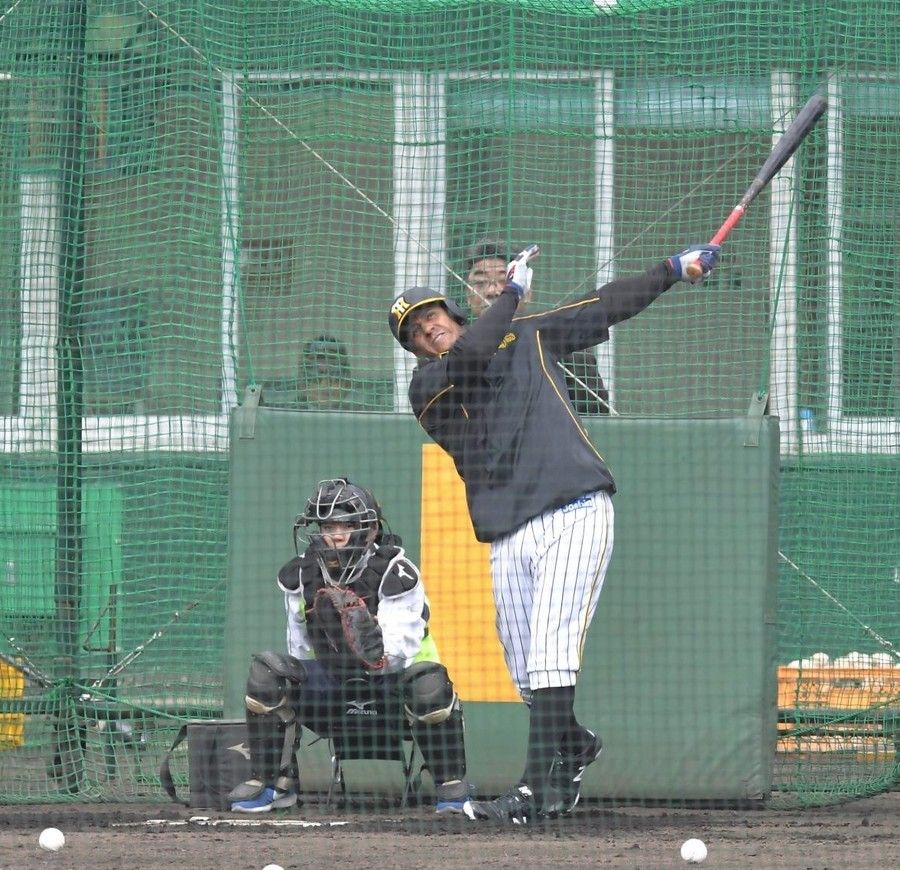 ミスタータイガース・掛布雅之が背負った阪神栄光の背番号31を背に登場。バッティングピッチャーを相手に56スイングし、柵越えレフトとセンター方向に合計5本。