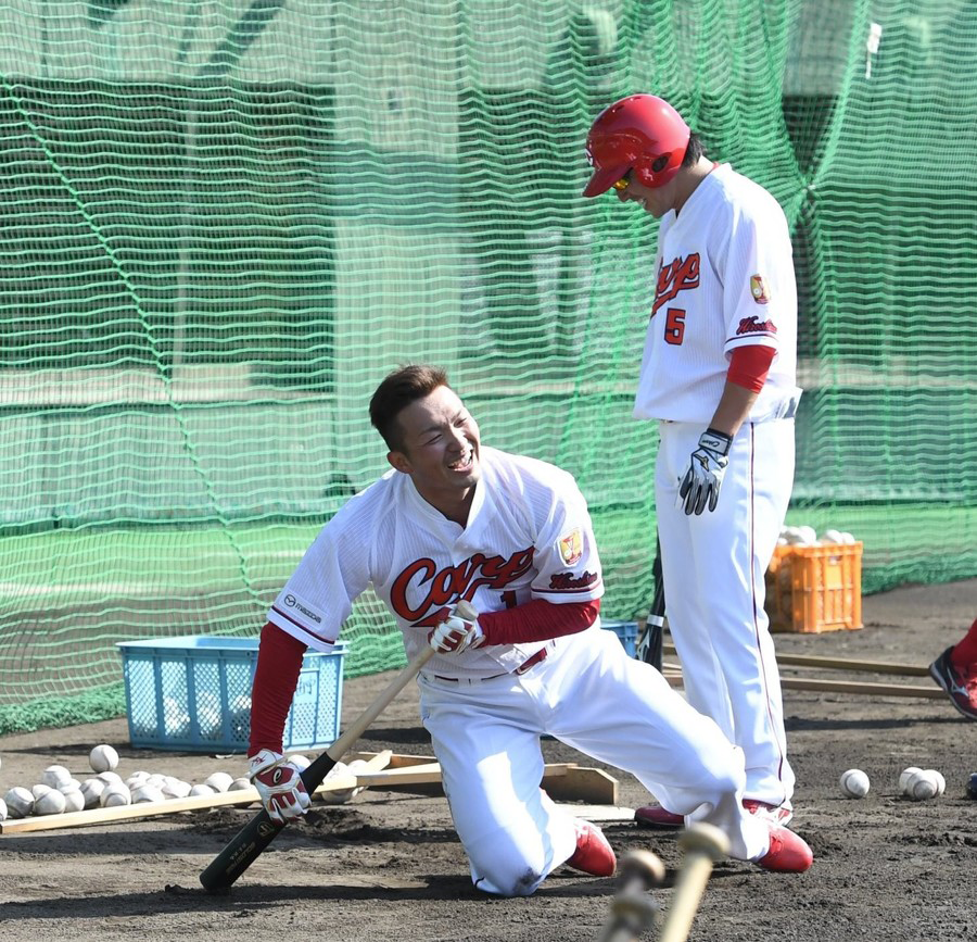 「広島春季キャンプ」(1日、日南) 主砲・鈴木誠也外野手が、初日からエンジン全開だ。長野と並んで行ったランチ特打。ど迫力のスイングでファンを沸かせた。柵越えを連発して順調な調整ぶりをアピールすると、見せ場はその後のティー打撃。30球以上を早打ちする連続ティーで、1球ごとに声を上げながらスイング。持ち前のパワーでボールを強くたたき続け、これを3セットもこなした。初日からすさまじい迫力に、長野も思わず苦笑い。ファンからも拍手が沸き起こっていた。