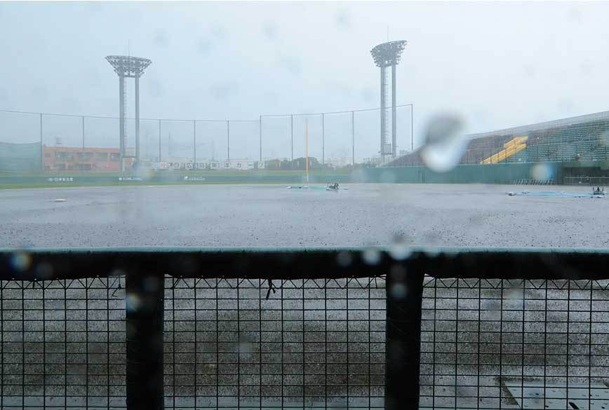 19日に沖縄市の「コザしんきんスタジアム」で予定されていた広島とロッテの練習試合は、試合開始直前に降り出した大雨で雨天中止となった。ロッテのドラフト1位藤原恭大外野手が「1番・中堅」で、広島の長野久義外野手が「3番・DH」でスタメン出場予定だった一戦。スタジアム内にスタメンが発表された直後に急激に天候が悪化。大雨が降り出し、雨天中止がきまった。