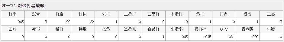倉本寿彦 .045 0本 0打点 OPS.091